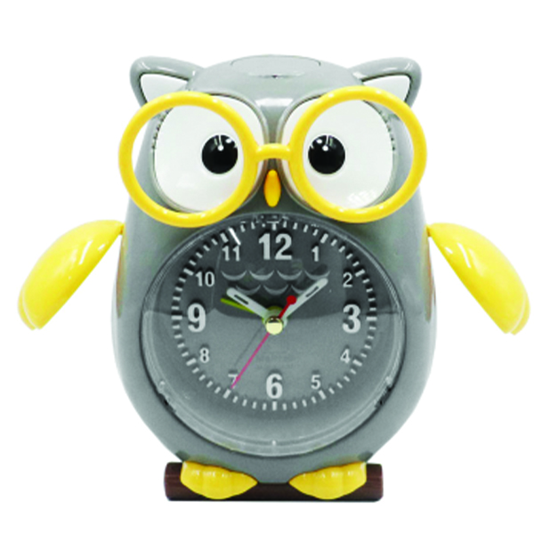 Παιδικό Επιτραπέζιο Ρολόι Μπαταρίας με Ξυπνητήρι σε Σχήμα Κουκουβάγιας Γκρι