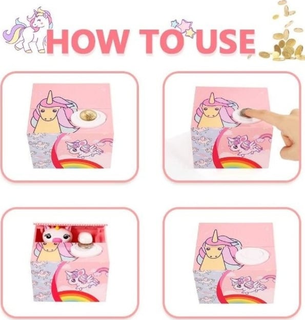 Όταν βάζετε τα νομίσματα στο πλαίσιο, θα ακουστεί μουσική και ο μονόκερος θα κάνει την κίνηση του!