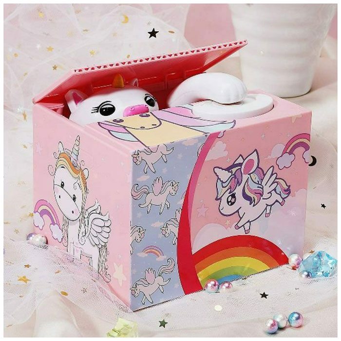 Ο Παιδικός Κουμπαράς Πονηρός Μονόκερος είναι ένας πολύ όμορφος τρόπος για να μάθετε στα παιδιά σας να αποθηκεύουν τα χρήματά τους και η αποταμίευση θα γίνει γι' αυτά το πιο διασκεδαστικό παιχνίδι!