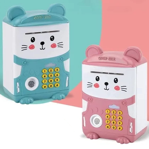 Παιδικός Κουμπαράς Χρηματοκιβώτιο - ATM Γατάκι με Κωδικό Πρόσβασης, Δακτυλικό Αποτύπωμα και Μετρητή Κερμάτων