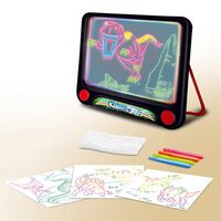 O μαγικός πίνακας, μοιάζει με ένα διάφανο παράθυρο που μπορείς να δεις μέσα! Αλλά όταν το παιδί ζωγραφίζει πάνω του, οι ζωγραφιές φωτίζονται με LED φως σαν μαγικό! Με 9 στένσιλς που τοποθετούνται πίσω από τον διαφανή πίνακα και βοηθούν το παιδί να αντιγράψει τα σχέδια.