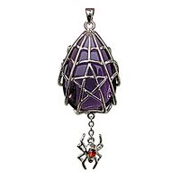 Η ιερή αράχνη υφαίνει τον ιστό της γύρω από την πεντάλφα, το μαγικό αστέρι των πέντε στοιχείων και υπόσχεται να κρατήσει τις δυνάμεις του κρυστάλλου για νίκη και διάκριση μόνο για τον κάτοχο του φυλαχτού αυτού.