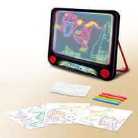 O μαγικός πίνακας, μοιάζει με ένα διάφανο παράθυρο που μπορείς να δεις μέσα! Αλλά όταν το παιδί ζωγραφίζει πάνω του, οι ζωγραφιές φωτίζονται με LED φως σαν μαγικό! Με 9 στένσιλς που τοποθετούνται πίσω από τον διαφανή πίνακα και βοηθούν το παιδί να αντιγράψει τα σχέδια.