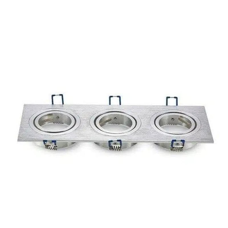 Παραλληλόγραμμο Χωνευτό Κινούμενο Νίκελ Πλαίσιο για Σποτ GU10 – MR16 Τριπλό Ασημί 25.5x9.1cm Aigostar