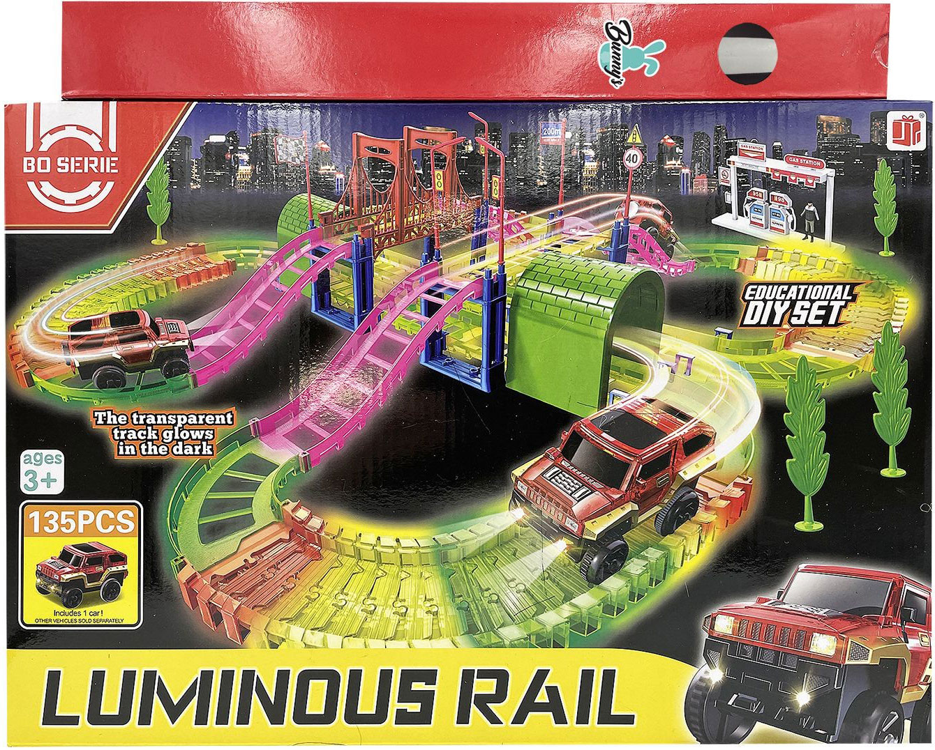Το παιχνίδι συνεχίζεται ακόμη και όταν σβήσουν τα φώτα. Τα φωσφορίζοντα κομμάτια δημιουργούν μοναδικό εφέ στο σκοτάδι, ενισχύοντας τη φαντασία και τον ενθουσιασμό. Το παιδί στήνει τη δική του πίστα, πειραματίζεται με τις διαδρομές και ζει την εμπειρία ενός πραγματικού αγώνα.