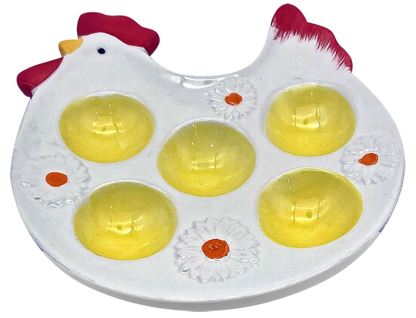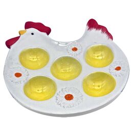 Η αυγοθήκη σε σχήμα κότας διαθέτει 5 ειδικές θέσεις για αυγά, συνδυάζοντας πρακτικότητα και διακοσμητική αισθητική, ιδανική για να παρουσιάσετε τα πασχαλινά αυγά με έναν όμορφο και οργανωμένο τρόπο.
