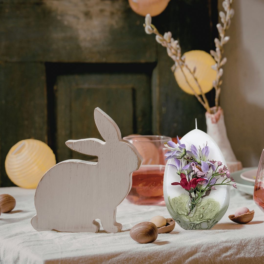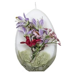 Το πασχαλινό διακοσμητικό κερί σε σχήμα αυγού συνδυάζει την κλασική πασχαλινή αισθητική με μια ανοιξιάτικη σύνθεση λουλουδιών που δημιουργεί μια ιδιαίτερα κομψή διακοσμητική πρόταση.