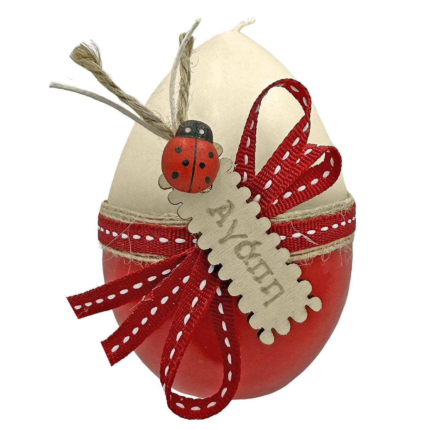 Πασχαλινό Διακοσμητικό Κερί Δίχρωμο με Ξύλινη Πασχαλίτσα Αγάπη και Κορδέλα 9cm