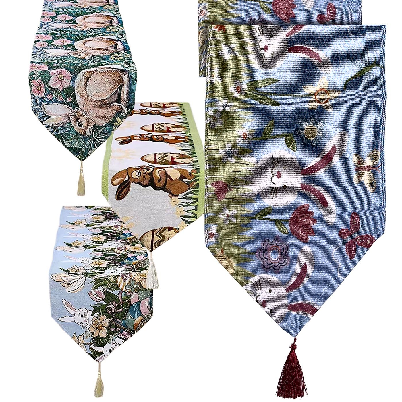 Πασχαλινό Runner Τραπεζιού Διακόσμησης 180x34cm με Λαγουδάκια και Ανοιξιάτικα Σχέδια