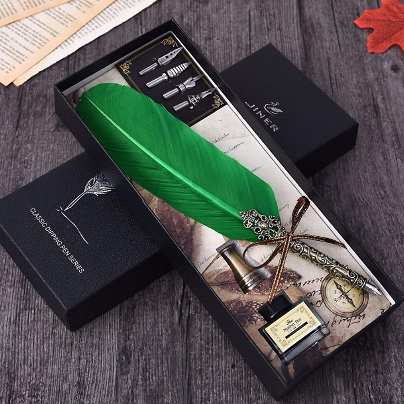 Πένα Καλλιγραφίας με Φτερό - Classic Dipping Feather Pen ΠράσινοΠένα Καλλιγραφίας με Φτερό - Classic Dipping Feather Pen