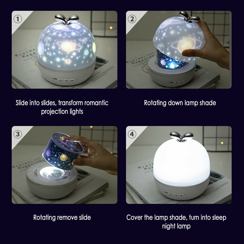 Αφαιρέστε το στρογγυλό καπάκι, και δείτε μαγικά σχέδια να προβάλονται σε όλο το δωμάτιο και να γεμίζουν το ταβάνι σας!