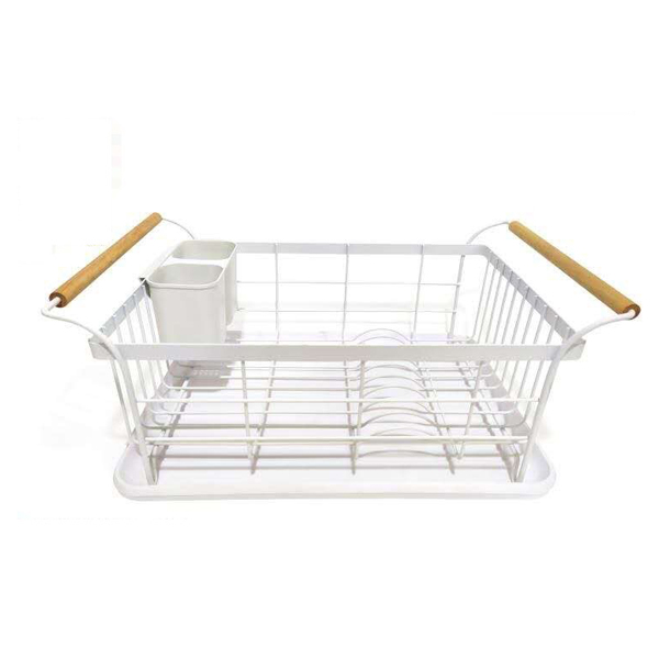 Πιατοθήκη Country Λευκή Μεταλλική με Μπαμπού Λαβές 45x33x17εκ.