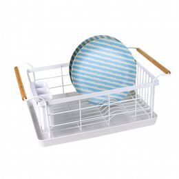 Πιατοθήκη Newport Λευκή Μεταλλική με Μπαμπού Λαβές 42x30x20εκ.