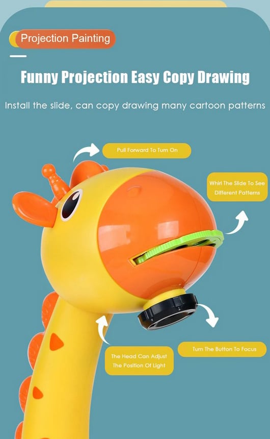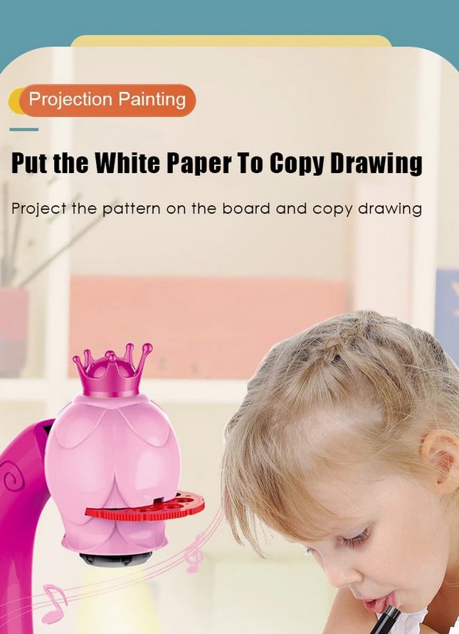 Ο προβολέας εμφανίζει μια εικόνα στον πίνακα σχεδίασης του τραπεζιού και στη συνέχεια το παιδί σας μπορεί να σχεδιάσει. Μετά από αυτό μπορεί να προχωρήσει στην αντιγραφή εικόνων σε χαρτί!