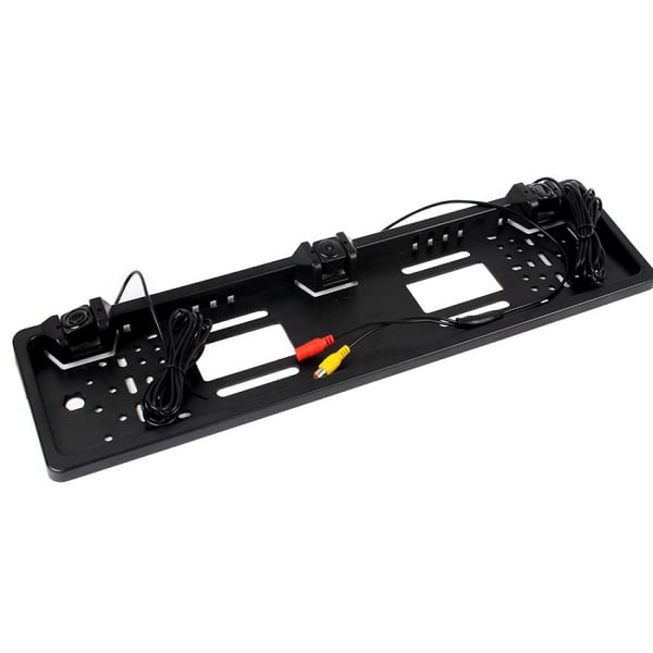 Το πλαίσιο πινακίδας ταιριάζει σε ευρωπαϊκές πινακίδες και σας παρέχει ότι χρειάζεστε για να κάνετε όπισθεν ή να παρκάρετε το αυτοκίνητο σας, χωρίς να ακουμπήσετε το πίσω όχημα. Διαθέτει δύο αισθητήρες υπερήχων για την ανίχνευση εμποδίων. Χρησιμοποιεί σύνδεση RCA για να συνδεθεί εύκολα με οποιοδήποτε Monitor διαθέτετε και να έχετε εικόνα όταν κάνετε όπισθεν. Παίρνει ρεύμα απο τα πίσω φώτα ώστε να λειτουργεί αυτόματα όταν το αυτοκίνητο κάνει όπισθεν.