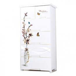 Πλαστική Συρταριέρα 139x70x49cm με 6 Συρτάρια Σχέδιο Βάζο με Λουλούδια