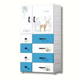 Πλαστική Τροχήλατη Ντουλάπα με 8 Συρτάρια 146.5 x 67.5 x 40.5 cm - Μπλε