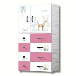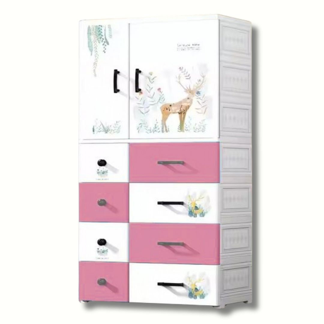 Πλαστική Τροχήλατη Ντουλάπα με 8 Συρτάρια 146.5 x 67.5 x 40.5 cm - Ροζ