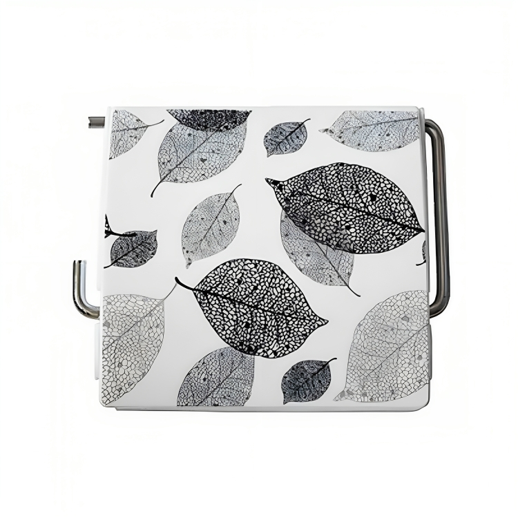 Πλαστική Βάση Χαρτιού Τουαλέτας με Καπάκι - Λευκό Γκρι με Φύλλα