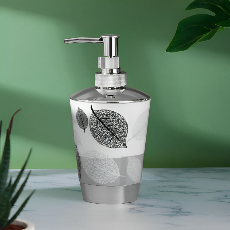 Πλαστικό Dispenser Σαπουνιού - Λευκό Γκρι με Φύλλα