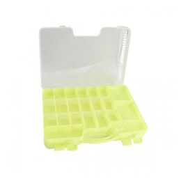 Πρακτικό, ευρύχωρο πλαστικό βαλιτσάκι με κούμπωμα ασφαλείας.Το εσωτερικό του κουτιού είναι χωρισμένο σε διάφορα μικρά τμήματα για να οργανώνετε και να τοποθετείται μικροαντικείμενα όπως αγκίστρια, βαρίδια, και ότι άλλο χρειαστεί.