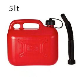 Πλαστικό δοχείο καυσίμων, με εργονομική λαβή για εύκολη μεταφορά, σε κόκκινο χρώμα, με βιδωτό εύκαμπτο στόμιο.