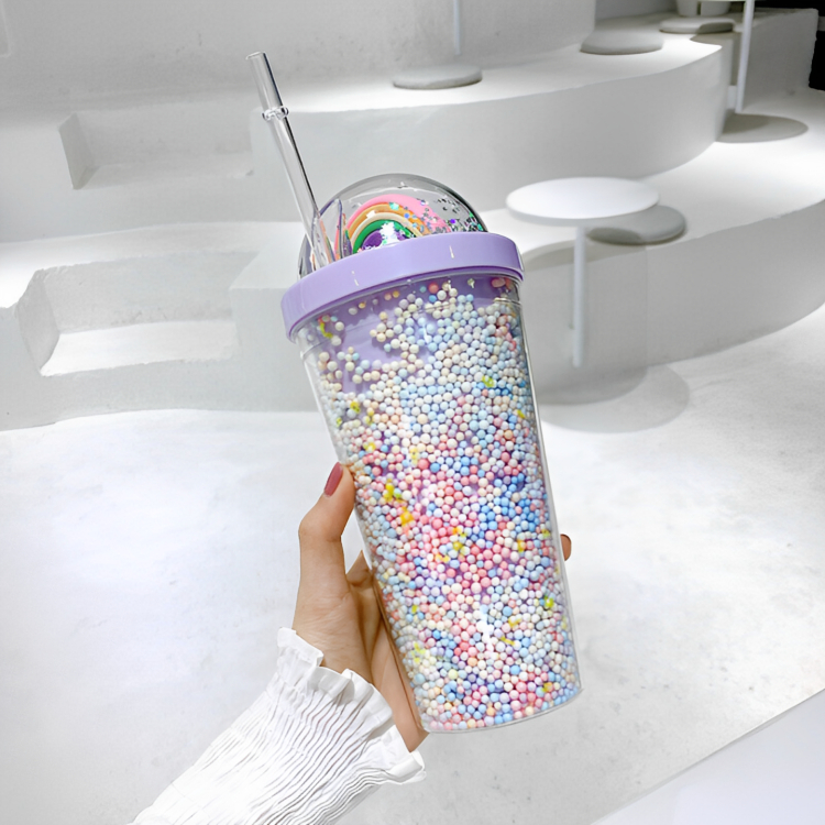 Απολαύστε τα αγαπημένα σας ροφήματα με το πιο γλυκό και παιχνιδιάρικο ποτήρι, διακοσμημένο με τα χρώματα του Ουράνιου Τόξου!