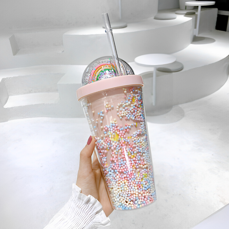 Απολαύστε τα αγαπημένα σας ροφήματα με το πιο γλυκό και παιχνιδιάρικο ποτήρι, διακοσμημένο με τα χρώματα του Ουράνιου Τόξου!
