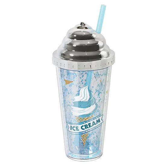 Πλαστικό Ποτήρι με Καπάκι & Καλαμάκι σε Σχήμα Παγωτό 380mL - Μπλε