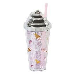 Πλαστικό Ποτήρι με Καπάκι & Καλαμάκι σε Σχήμα Παγωτό 380mL - Ροζ