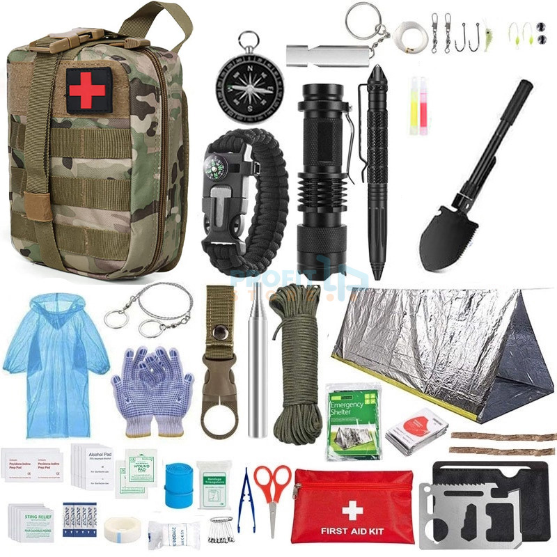 Περιέχει φακό και πυξίδες έτσι ώστε να μπορείτε πάντα να βρείτε τον δρόμο σας, ιατρικές προμήθειες για να φροντίσετε τραύματα καθώς και εργαλεία όπου θα σας βοηθήσουν να εξασφαλίσετε τροφή και να προστατευτείτε από καιρικά φαινόμενα!