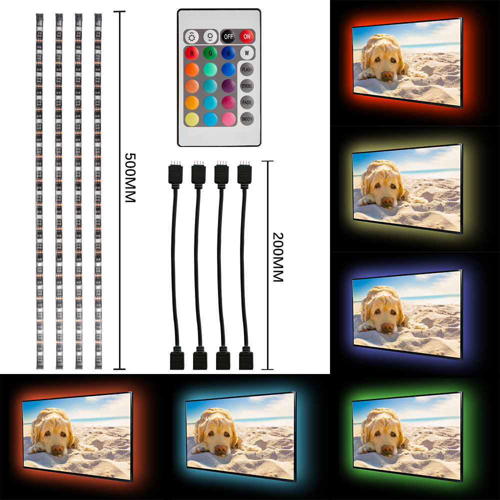 Πλήρες Κιτ Κρυφού Φωτισμού RGB Με USB 4x50cm με Τηλεχειριστήριο για Τηλεοράσεις και Υπολογιστές