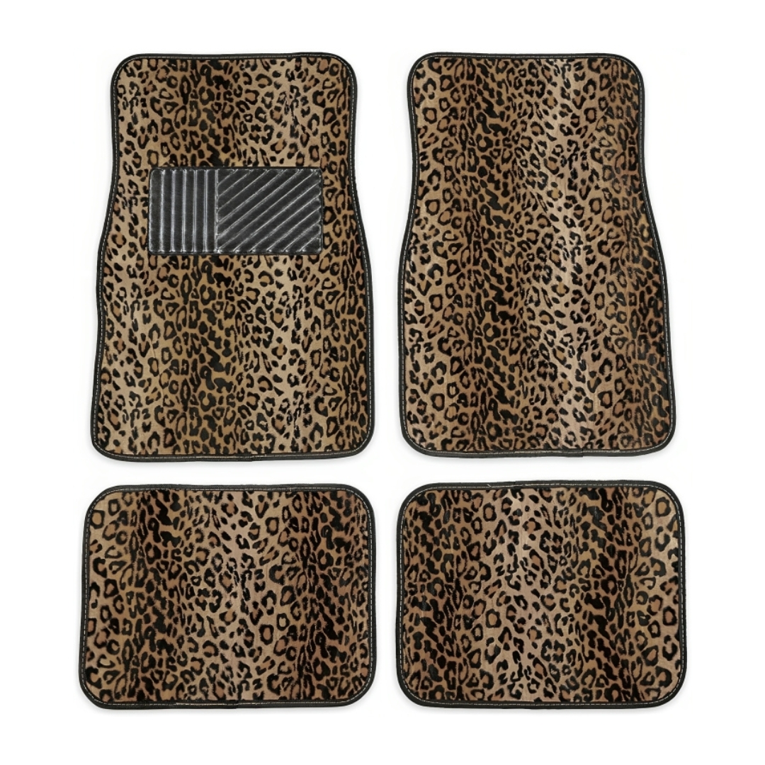 Πλήρες Σετ 4 Universal Αντιολισθητικά Πατάκια Αυτοκινήτου Μοκέτα Λεοπάρ - 4 Τεμάχια