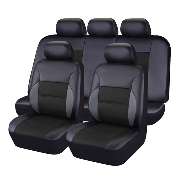 Πλήρες Σετ 8 Τεμαχίων Πολυτελή Universal Καλύμματα Καθισμάτων Αυτοκινήτου Μαύρα Δερματίνη & Ύφασμα Αντιολισθητικά 54149