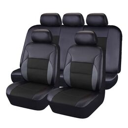 Πλήρες Σετ 8 Τεμαχίων Πολυτελή Universal Καλύμματα Καθισμάτων Αυτοκινήτου Μαύρα Δερματίνη & Ύφασμα 54149 OEM
