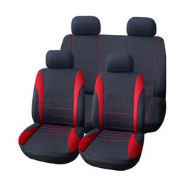 Πλήρες Σετ 9τμχ Universal Υφασμάτινα Προστατευτικά Καλύμματα Καθισμάτων Αυτοκινήτου Ανθρακί-Κόκκινα OEM