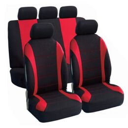 Πλήρες Σετ 9τμχ Universal Προστατευτικά Υφασμάτινα Καλύμματα Καθισμάτων & Μαξιλαριών Αυτοκινήτου με Κόκκινες Ραφές & Μαύρο