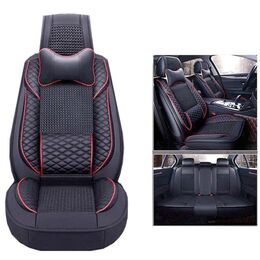 Υπερπολυτελές Πλήρες Σετ - Pu Leather Ανατομικά Καλύμματα για Μπροστινά & Πίσω Καθίσματα & Προσκέφαλα Αυτοκινήτου 9 Τεμάχια Μαύρο
