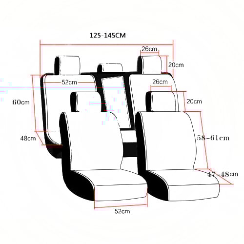 Ολοκληρωμένο υπερπολυτελές σετ καλυμμάτων αυτοκινήτου το οποίο περιλαμβάνει συνολικά 9 τεμάχια: 2 τεμάχια για τα μπροστινά καθίσματα, 4 τεμάχια για τα πίσω καθίσματα, 2 τεμάχια για το μεσαίο πίσω κάθισμα (τεμπέλη), 1 τεμάχιο για το προσκέφαλο του μεσαίου πίσω καθίσματος.