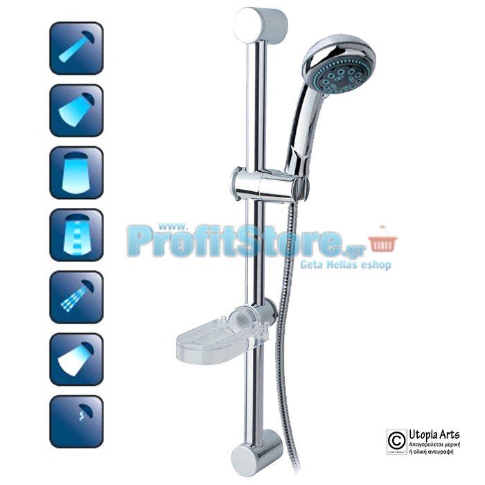 Συρόμενη βέργα ντουζιέρας χρωμέ με ρυθμιζόμενο ντους υδρομασάζ, σαπουνοθήκη επίσης συρόμενη και σπιράλ 1,5μ.