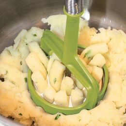 Με ελατήριο που επαναφέρει το κόφτη κάνοντας σύντομότερη την εργασία πολτοποίησης της βραστής πατάτας αλλά και άλλων λαχανικών.