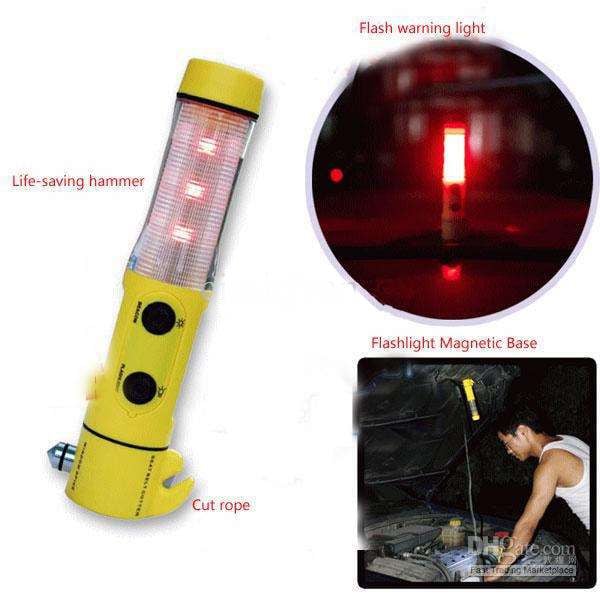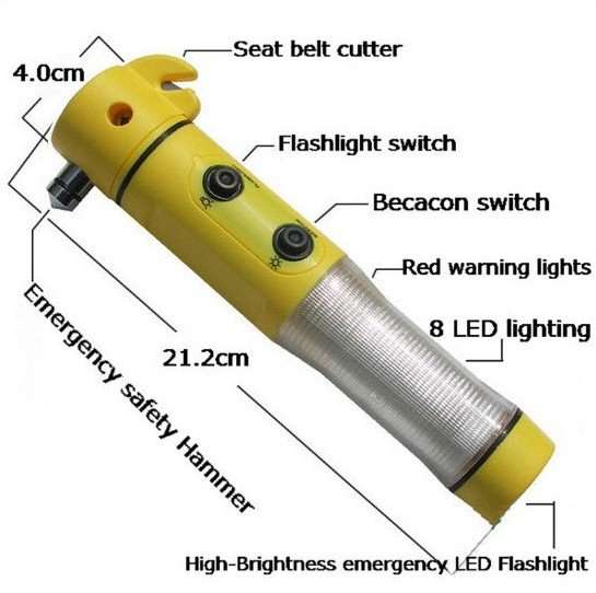 Δυνατός LED φακός, κόκκινα προειδοποιητικά φώτα που αναβοσβήνουν, κόφτης ζώνης ασφαλείας, σφυράκι για σπάσιμο παράθυρου.