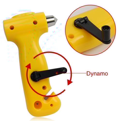 Εξαιρετικό Πολυεργαλείο εκτάκτου ανάγκης για το αυτοκίνητο με σφυρί, ειδικό κόπτη για ζώνες ασφαλείας και φακό LED που φορτίζει με Δυναμό.