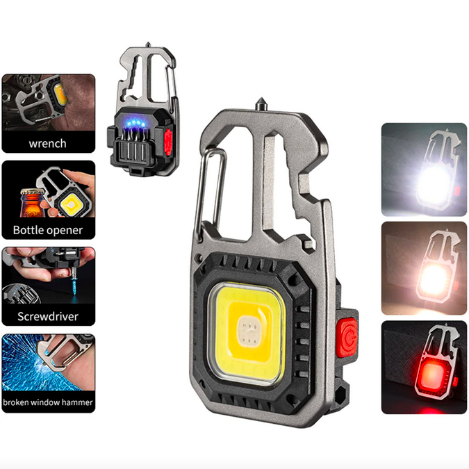 Πολυεργαλείο Μπρελόκ Αλουμινίου με Επαναφορτιζόμενο Φακό LED COB Andowl Μαύρο