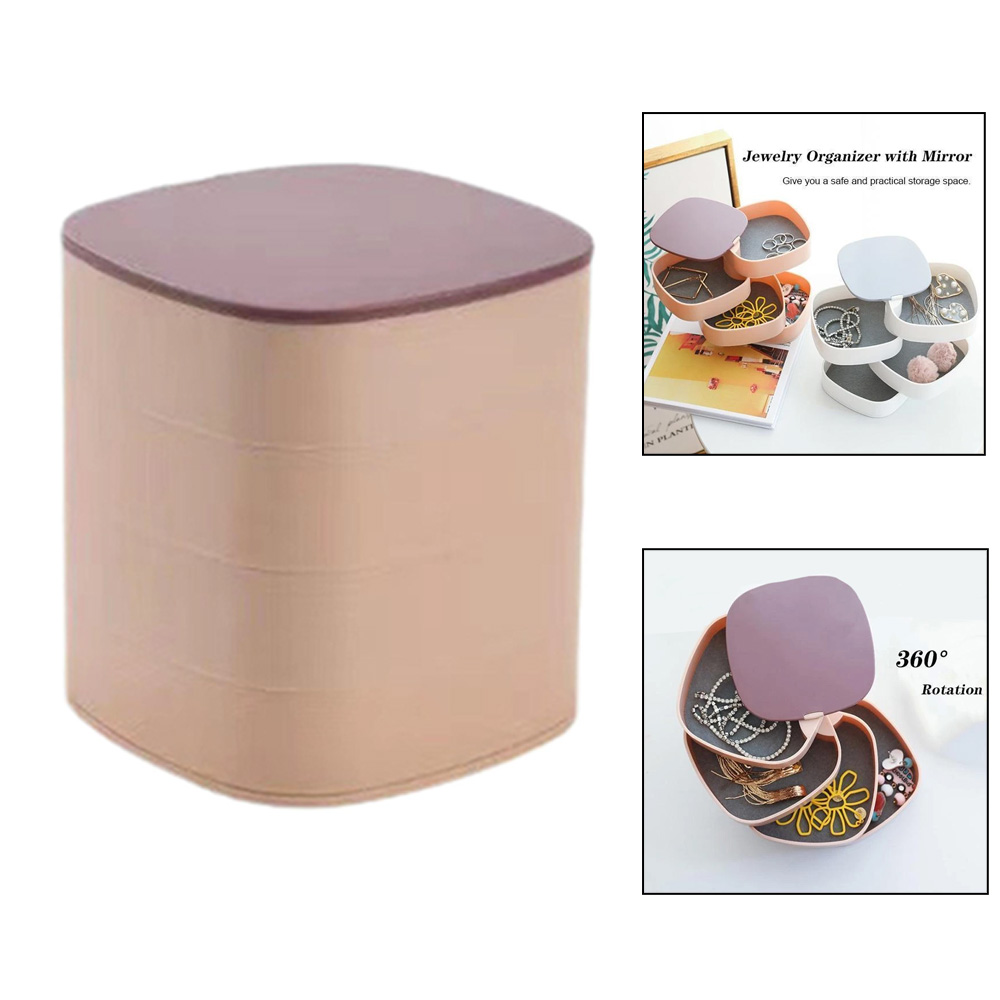 - 1 x Πολυλειτουργική Κοσμηματοθήκη - Μπιζουτιέρα - Κουτί Αποθήκευσης 4 Επιπέδων Περιστρεφόμενη 360° με Καθρέπτη 12x11x11cm