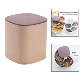 Πολυλειτουργική Κοσμηματοθήκη - Μπιζουτιέρα - Κουτί Αποθήκευσης 4 Επιπέδων Περιστρεφόμενη 360° με Καθρέπτη 12x11x11cm