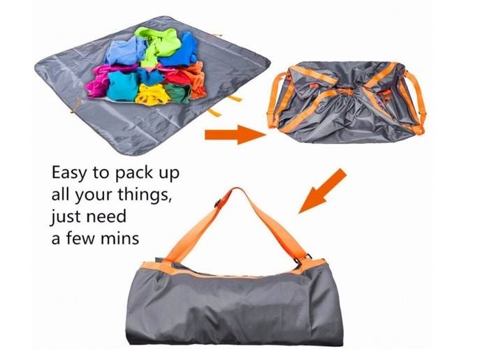 Τώρα με την πολυλειτουργική τσάντα - ψάθα δεν χρειάζεται να κουβαλάτε μαζί σας ψάθα ή επιπλέον πετσέτα όταν πάτε στην παραλία. Η τσάντα ανοίγει σε δευτερόλεπτα και γίνεται μια ψάθα διάστασης 146cm x 146cm και το αντίστροφο. Είναι κατασκευασμένη απο αδιάβροχο υλικό και το καλύτερο είναι ότι πλένεται στο πλυντήριο.