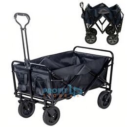 Πολυλειτουργικό Αναδιπλούμενο Τρόλεϊ Καρότσι Κάμπινγκ με 4 Τροχούς για Δύσβατες Διαδρομές, Μεταλλικός Σκελετός & Πτυσσόμενη Λαβή - Μαύρο 86x50x58εκ