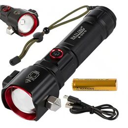 Πολυλειτουργικός Επαναφορτιζόμενος Αδιάβροχος Φακός IPX5 σε Ψυχρό Λευκό, Μπλε και Κόκκινο Φωτισμό με Ζουμ, Ενσωματωμένο Εργαλείο Έκτακτης Ανάγκης και Powerbank