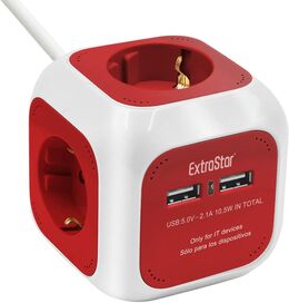 Πολύπριζο 4 Θέσεων με 2 x USB ExtraStar© Extended με Καλώδιο 1,5m & Βάση Στήριξης Κόκκινο